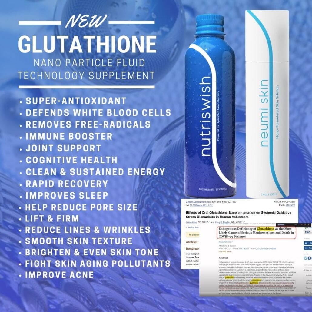 A new product and technology that has finally made Glutathione bio-available to the body. They reduced it to it's smallest tri-peptide and water enveloped it, and structured the water so the cell just absorbs it straight through the skin or sublingually. It's a really break through! and a kryptonite to the whole poisoning agenda. Mercury, Alluminium, Cadium, all the metals, nano particulates, graphene , agricultural and hyhgene poisons, Glutathion the most broad spectrum anti-oxident and is the master molecule of our body responsible for over 400 processes in the body. The more toxic exposure we have the less glutathione we have until the toxins win, so we're talking about bringing people back teenage years glutathione levels and and turning the lights back on in humanity in a big way!